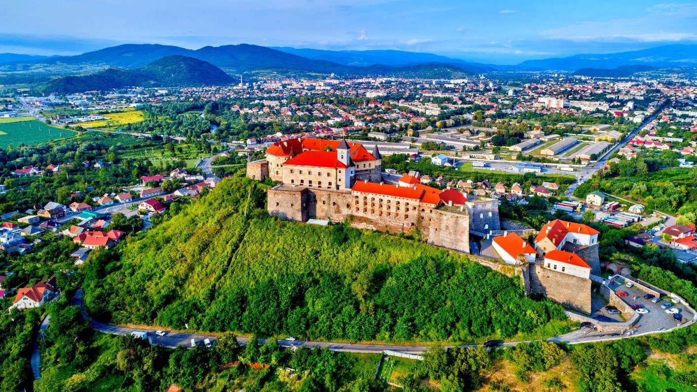 Мукачево лежить на межі великої рівнини та хребта Північно-Східних Карпат, що тягнеться уздовж річки Латориці. Над долиною підноситься 60-метрова гора вулканічного походження, вершина якої складається з чотирьох терас, що утворюють каскад з перепадом висоти у 25 метрів. Такий рельєф і дозволив розбудувати тут складну систему фортифікацій, яка розвивалася від перших дерев’яно-земляних укріплень IX–XI ст. аж до трьох оборонних дворів з мурами, вежами і бастіонами XVII ст. Мукачівський замок жодного разу не був взятий штурмом, а найбільш героїчну оборону за всю його історію очолила жінка – трансильванська княгиня Ілона Зріні три роки втримувала замок, узятий в облогу австрійським військом. На одному з бастіонів встановлено пам’ятник княгині та її десятирічному синові Ференцу ІІ Ракоці, що згодом, у дорослому віці очолив нове антигабсбурзьке повстання. А у Верхньому дворі стоїть пам’ятник литовсько-руському князю Федору Корятовичу, який володарював у краї наприкінці XIV ст.