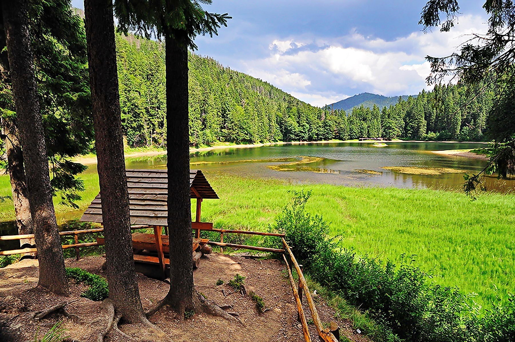 Це найвідоміша і найвідвідуваніша природна пам’ятка Українських Карпат. Озеро Синевир, або Морське Око, лежить на висоті 989 метрів над рівнем моря. Воно утворилося близько 10 тисяч років тому, коли землетрус спричинив зсув гірської породи, яка перекрила долину. Утворена улоговина наповнилася водою трьох гірських потічків. Нині озеро живиться поверхневими і атмосферними водами, тому його розміри досить сильно коливаються. Середня глибина озера Синевир становить близько 8 м, максимальна – 22 м; температура води на глибині більше двох метрів є постійною, +11°. У чистому, глибокому і холодному озері майже немає рослинності, зате добре почувається форель.