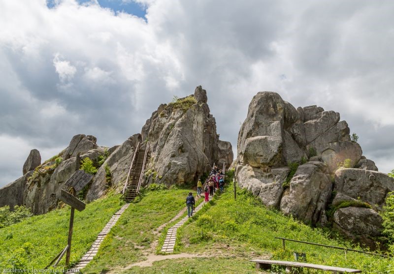 Природа – найкращий скульптор. Тільки вона могла створити такі могутні й мудрі форми, як Скелі Довбуша. Обриси величезних скель і гігантських каменів чимось нагадують неймовірні образи фантастичних істот. Здається, що тут, на таємних ходах, причаївся лев або мудрий сфінкс. А місцеві жителі впевнені, що кожна скеля відображає частину тіла національного героя Олекси Довбуша.
